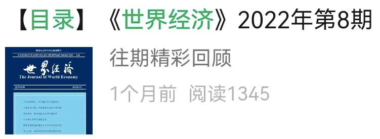 【目录】《世界经济》2022年第9期