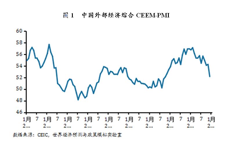 1、2018年4季度中国外部经济综合CEEM-PMI为53.5,较上个季度下降1.5个点。美国和欧元区经济景气程度有明显下滑,个别新兴市场经济体有亮点,全球经济景气程度进入周期下半场。