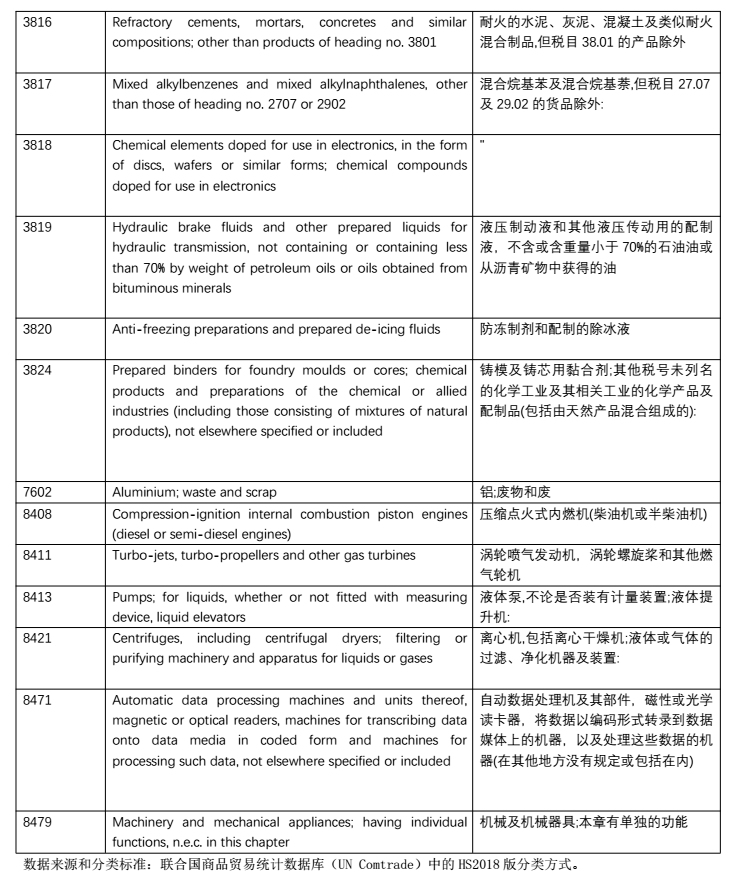 因此,韩国上游供应链对中国的半导体、通讯设备制造产业都具有重要影响。韩国生产的化工产品主要涉及石墨、焊接、纺织、橡胶、电子,电子产品制造与作为工业的原料等产品(HS编码3801、3809、3810、3812、3814、3816、3817、3818、3824)在我国全部进口中的占比均超过10%,其中工业原料混合烷基苯和混合烷基萘占比24.8%。