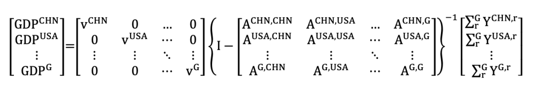 各国可以GDP表示为GDP=V(I-A)-1Y,即