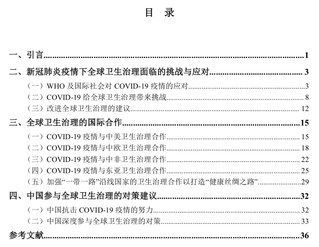 第四部分首先分析了中国在此次疫情治理中做出的贡献,随后为中国未来深度参与全球卫生治理提出建议。报告最后强调,中国作为负责任的世界大国,借此契机进一步参与全球卫生治理,为全球卫生治理贡献中国经验和中国力量。