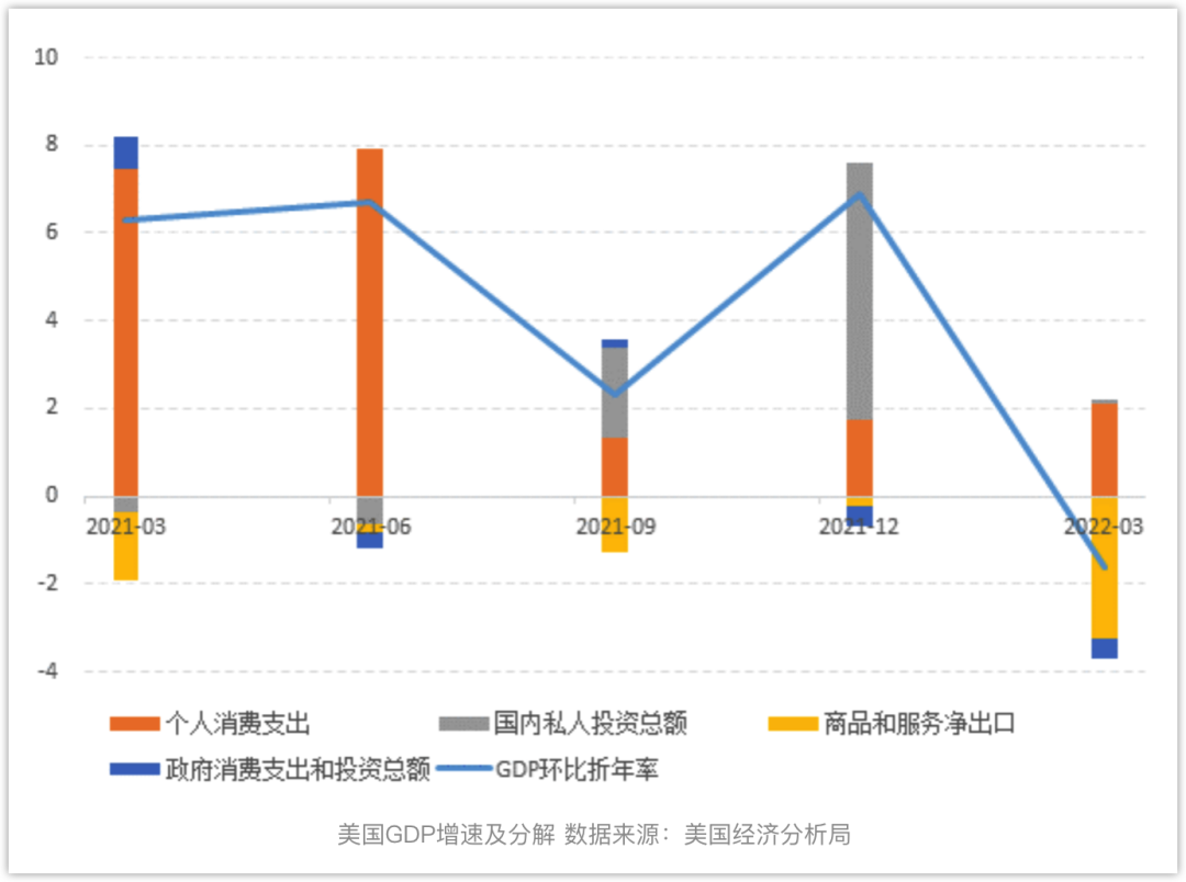 如果说美国一季度负增长不能说明有衰退风险,内需仍然强劲,那么二季度的负增长将暴露问题的严重性,内需整体上走向弱势,美国经济进一步向衰退迈近。