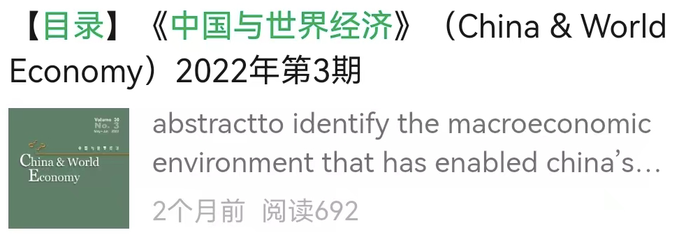 China & World Economy / 1–3, Vol. 30, No. 4, 2022