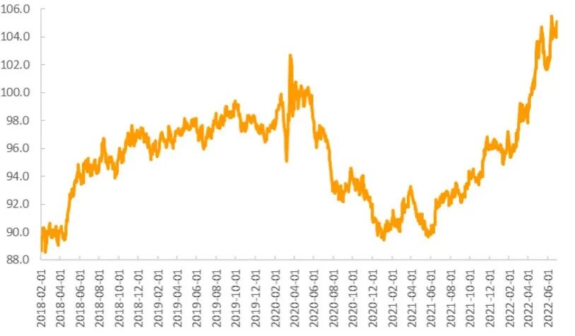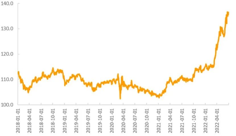 美元指数强势上涨,全球货币政策分化导致亚洲货币承压。日本通胀相较于欧洲、美国仍处于较低水平,加之经济前景的强不确定性,日本央行仍坚持了量化货币宽松政策,维持短期基准利率在负0.1%不变,维持基准10年期日债收益率在零左右,由此给日元汇率和日债带来了巨大的市场压力。2季度末,美元指数为104.7,较今年年初上涨9%,受此影响,欧元、英镑、澳元等非美货币不断贬至年内低位。一向被视为避险货币的日元汇率也急剧下跌至24年来低点,2季度末美元兑日元汇率为135.7,较今年年初下跌18%。在美联储加速货币紧缩、日元持续下挫,以及经济衰退隐忧、通胀上行等多种因素冲击下,韩元、菲律宾比索等亚洲多国货币承压。