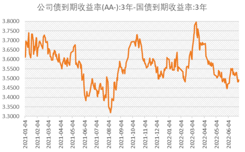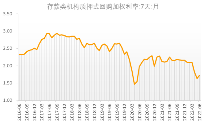 金融市场利率总体稳定,信用利差回落。2022年2季度,银行间市场利率降低,存款类金融机构7天质押式回购加权利率(DR007)6月均值1.72%,较3月下降37个基点;银行间7天质押式回购加权利率(R007)6月均值为1.87%,较3月下降47个基点。信用利差也有所回落,3年期低信用等级(AA-)公司债收益率与同期国债收益率的信用利差自今年1季度末的3.68%回落至5月末的3.45%,经历小幅震荡后季度末为3.49%。