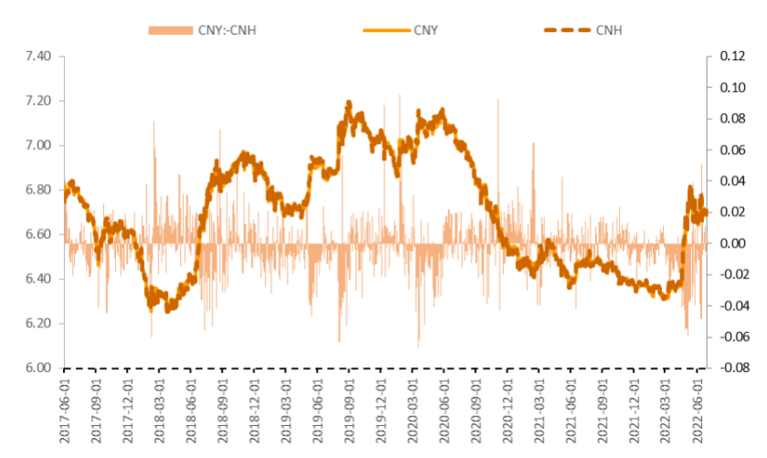 人民币汇率保持韧性。美联储加息推动美元指数强势上涨,但中国外汇市场的基本面仍然保持强势,人民币相对其他货币表现得更为稳定。今年以来,相较于欧元、日元和英镑超过两位数的贬值幅度,人民币/美元汇率从今年年初的6.37贬值至2季度末的6.69,贬值幅度为5.0%。篮子汇率指数(CFETS)从年初的103回落至2季度末的102,小幅回落0.9%。人民币汇率弹性增加,充分发挥了内外部冲击的“减震器”作用,促进了跨境资金流动趋于平衡。在面对国内国际诸多挑战时,金融市场高水平对外开放有助于增强外资中长期持有人民币资产的信心,外汇市场深度和成熟度有助于市场行为更加理性。