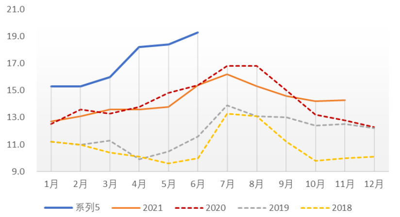 生产端运行平稳,疫情对工业生产和物流冲击基本消退。2022年6月工业增加值同比增速从4月的-2.9%回升至3.9%,货运周转量同期回正,疫情对工业生产和物流等的冲击已基本消退。建筑业施工持续改善,高频数据显示,6月第四周沥青物量需求指数基本追平去年同期,基建投资加速是建筑业复苏的重要推动力。