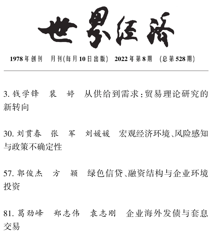 【目录】《世界经济》2022年第8期