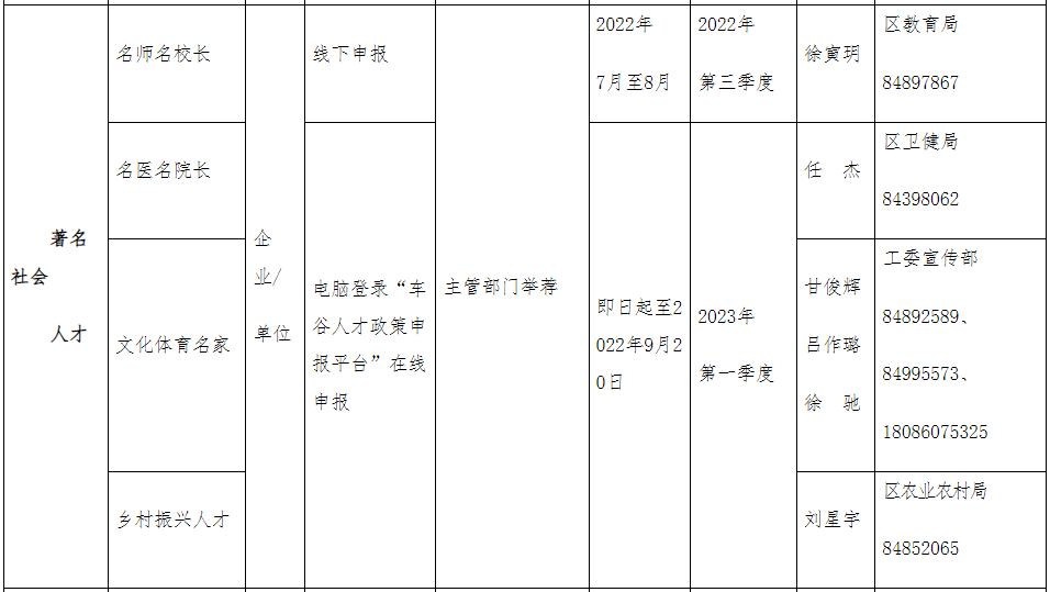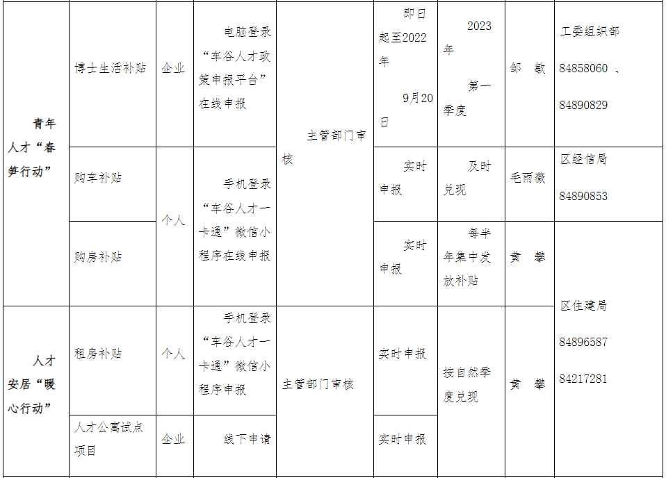 车谷产业教授“双百行动”、人才收入专项奖励、荐才奖、用才奖、引才补贴、人才企业购买中介服务补贴、人才租赁房补贴、人才公寓试点项目等政策将根据相应申报指南开放申报兑现工作。