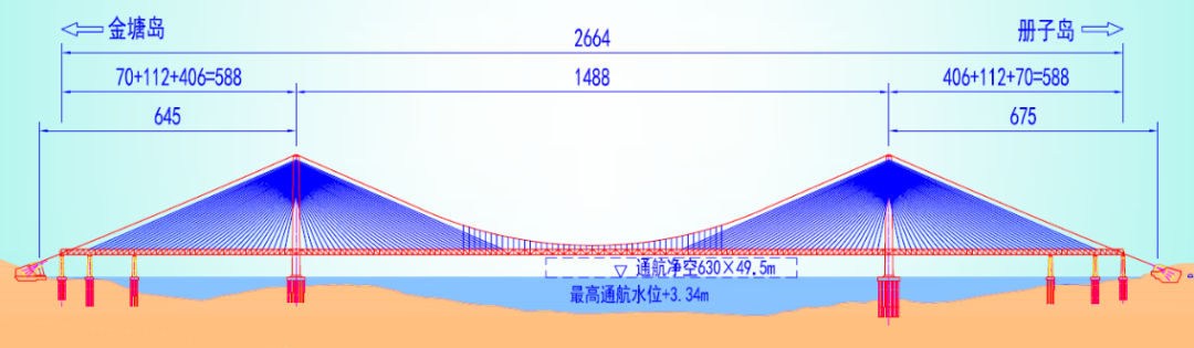 其中主通航孔桥为主跨400米双塔双索面钢桁结合梁斜拉桥,为世界最大跨度公铁两用无砟轨道斜拉桥。