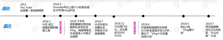 明星入驻+资本投入+内容链放宽,助力VUE整体的商业化进程,中腰部vlogger(Vlog创作者)将有较大的机会优势。