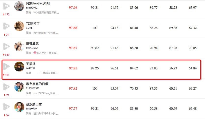 抖音自媒体@王摇摆凭借百万点赞爆款内容、高频更新、垂直领域(才艺、日常)内容,一跃951位,跻身入榜。