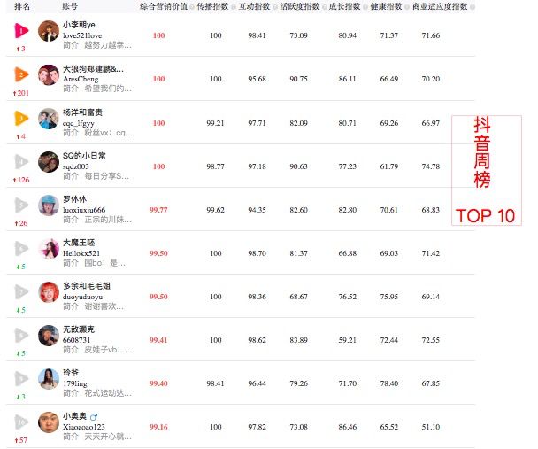 短视频商业价值榜单指标体系: