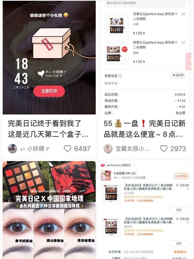 以此次“完美日记小狗眼影盘”为例,2月25号,在李佳琦直播间开售当天,15w盘眼影被抢购一空。