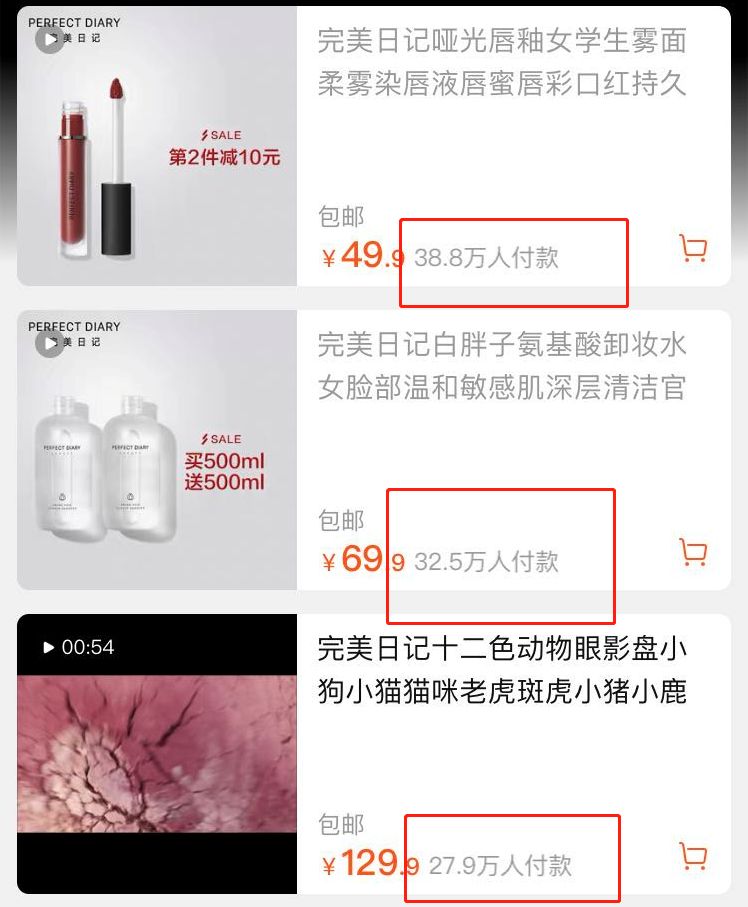 以备受瞩目的“国货之光”美妆品牌完美日记为例,此次三八节点,从预热到当天,“动物眼影”单品40万盘一天内被横扫一空,多款单品月销量超30万。