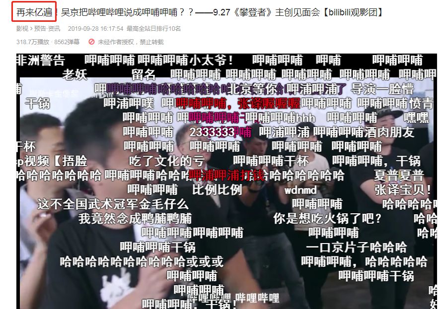 再来亿遍:洗脑内容常见弹幕语言,表示再看,再看,一遍一遍看的意思。这类视频普遍完播率,复播率较高,自媒体与用户的粘性也较强。