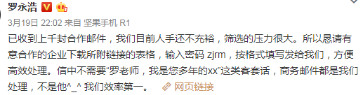 玩自己最熟悉的行业领域,前期生意自然不缺,就像老罗本人在微博上公布的一样,目前已接到上千份品牌的合作意向,本着买涨不买跌的心态,相信首次直播前,这个数字还要上涨。