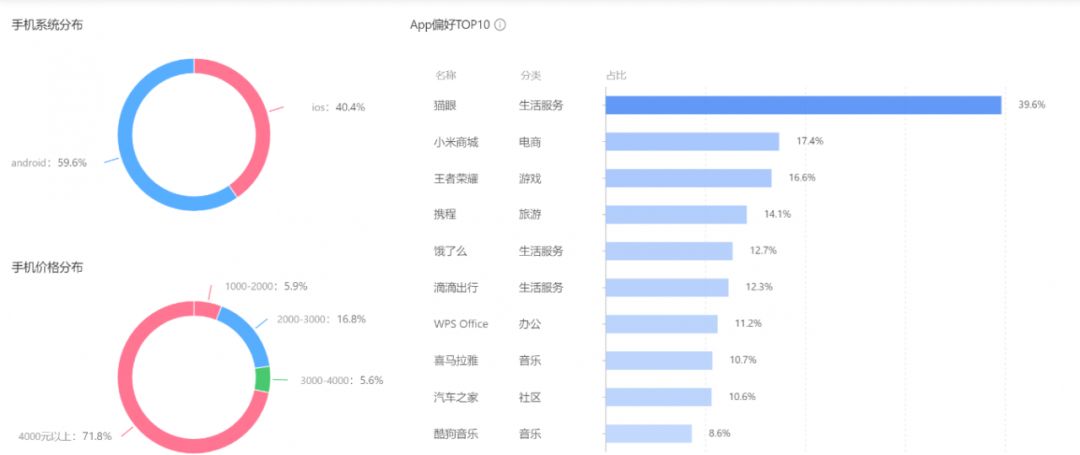 粉丝偏好生活服务、电商、游戏、旅游、办公、音乐、社区。
