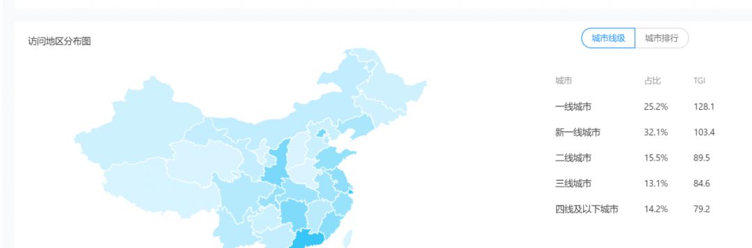粉丝集中在一线和新一线城市,整体占比达57.3%。前期抓住非下沉市场的用户,用实际数据去做背书,再去想怎么做下沉市场的生意。
