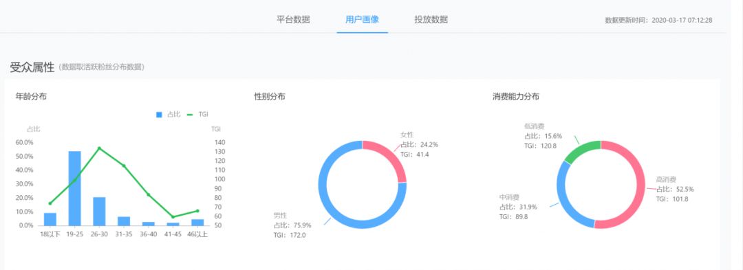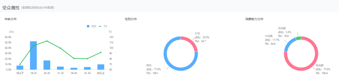 结合性别及消费能力,他的核心粉丝主要定位在19-30岁的人群中,男性为主,高消费群体。