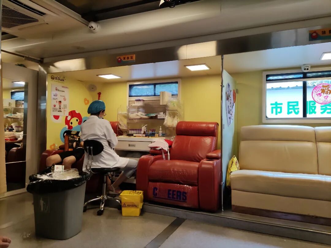 献血车里面的空间还挺宽敞明亮