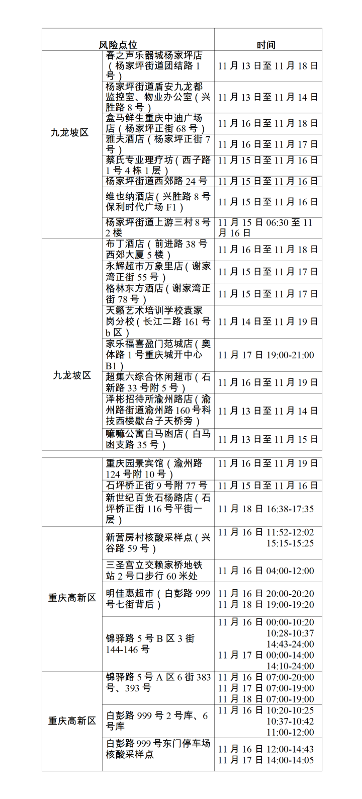 其中,确诊病例1-2和无症状感染者1-819在管控中发现,均无社会面活动轨迹。现将无症状感染者820-849在渝主要活动轨迹的风险点位和时间通告如下。