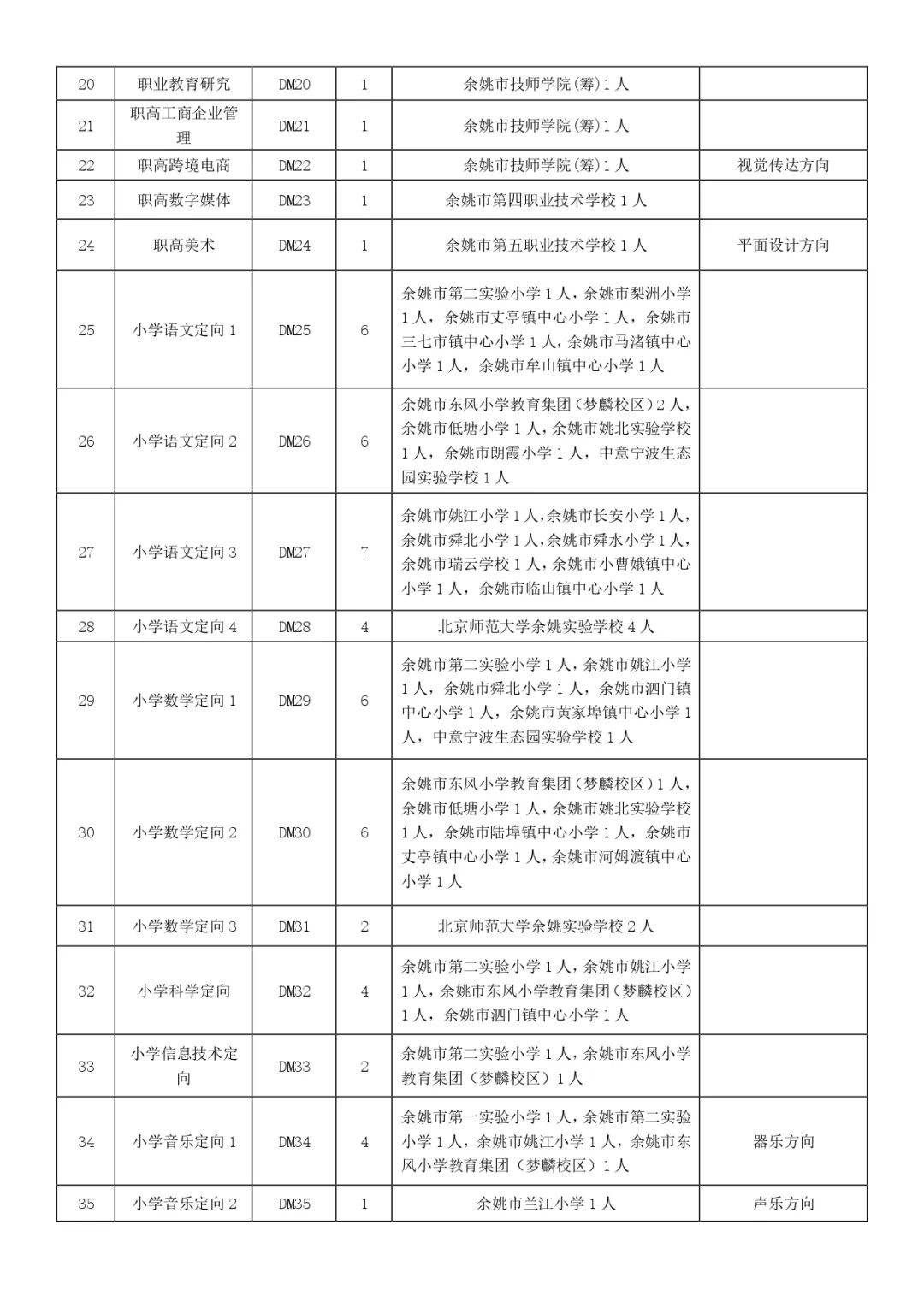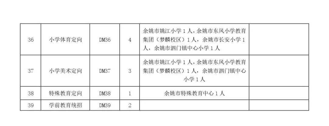 附件1:《余姚市面向2023年普通高校全日制应届毕业生招聘教师岗位计划表》