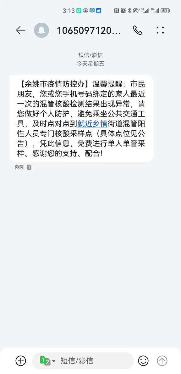 按照余姚市疫情防控办的最新通知要求,我市将对市内混管核酸检测结果出现异常的人员,通过发送检测异常提示短信的方式进行通知,并赋黄码,请广大市民留意查收手机短信和健康码,并请按照以下方式进行自我管理: