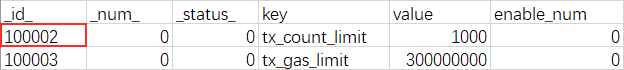 对于RocksDB或LevelDB这种KV的存储模式,将表名和插入时设置的主key拼起来作为数据库的KEY,对应的数据则序列化为VALUE。对应于_sys_config_这个表,以及tx_conut_limit这个主key的数据,其在KV数据库中的KEY为_sys_config__tx_conut_limit,VALUE为对应的数据序列化后的字符串。