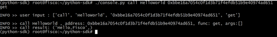 以上功能ready后,Python SDK已经可以实现与FISCO BCOS链的所有交互,但用户仍无法通过Python SDK直观感受FISCO BCOS链,于是在实现以上所有接口的基础上,Python SDK集成了控制台console,console通过命令去调用以上接口,用户可通过命令行获取区块链节点信息、部署和调用合约。