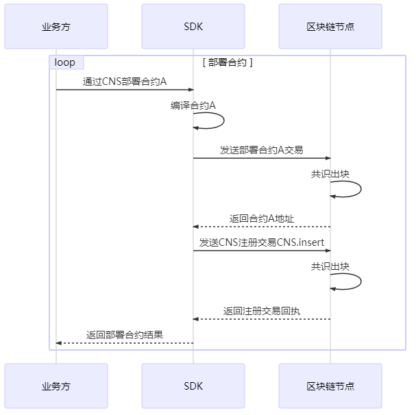 为方便业务方调用合约,SDK封装了CNS方式调用合约的接口,接口内部实现了合约地址的查找,业务方对此无感知。