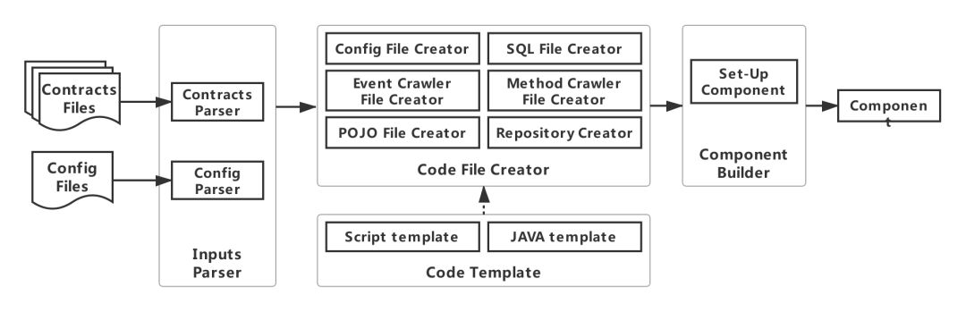 代码生成模块:根据获取的交易和event对象,填充代码模板,生成代码文件;