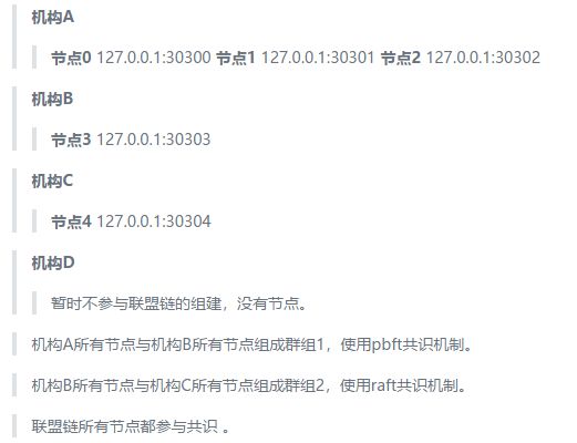 1、假设多家机构组成联盟,每家机构都派出代表进驻联盟委员会(在本次测试组网部署中,假设有ABCD四家机构)。