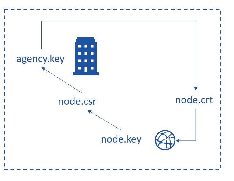 联盟链成员机构使用agency.key对证书请求文件node.csr进行签发,得到节点/SDK证书node.crt;