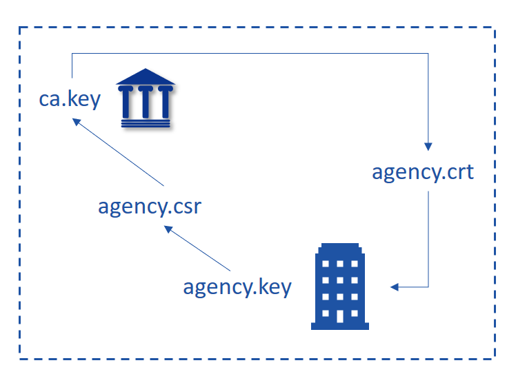 1.机构首先在本地使用机构私钥agency.key生成证书请求文件agency.csr;