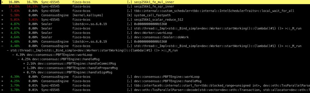 首先使用perf对FISCO BCOS进程进行性能采样: