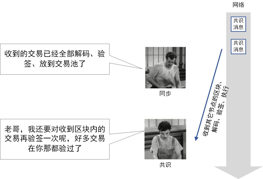 在FISCO BCOS的设计里,共识和同步也在干着这样重复的事情。