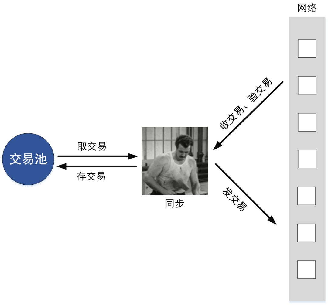 不断进行交易的收发,让每一笔交易尽可能地到达每个节点。