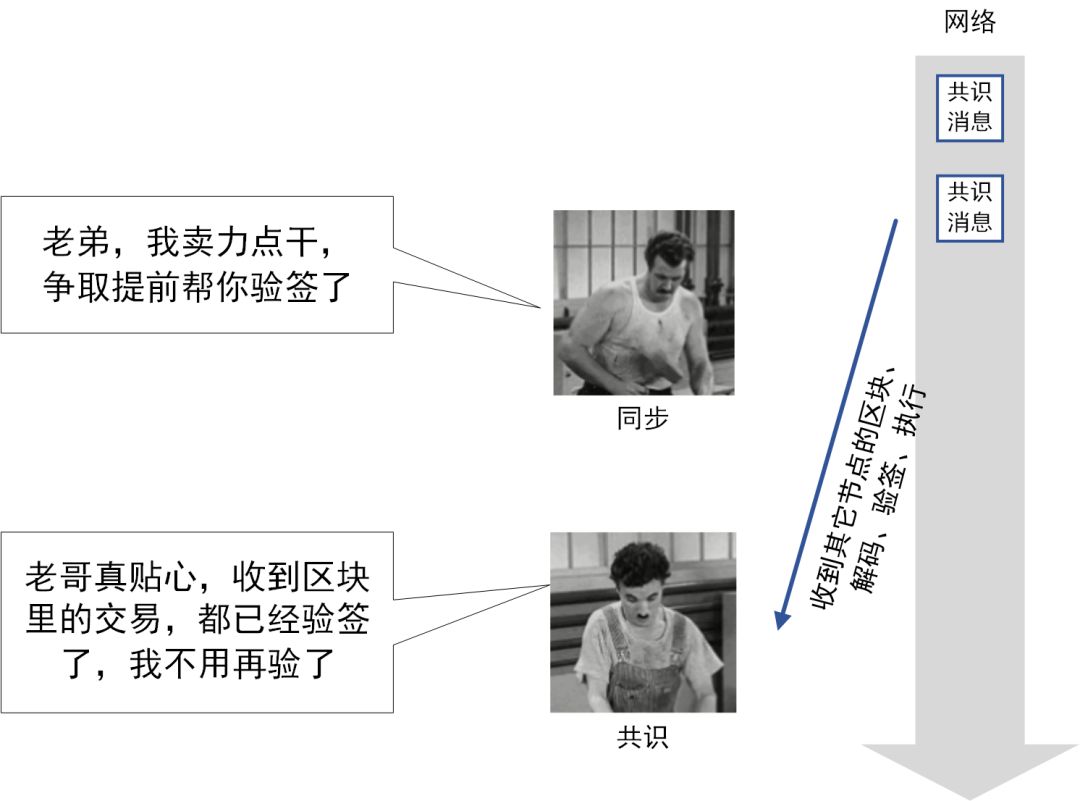 执行区块:解码区块,验证区块,执行区块,将区块的执行结果签个名广播出去