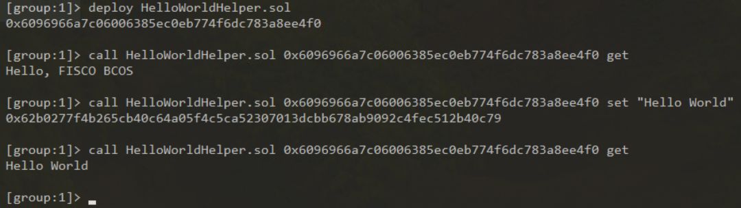 部署HelloWorldHelper合约,然后调用HelloWorldHelper合约的接口,结果如下