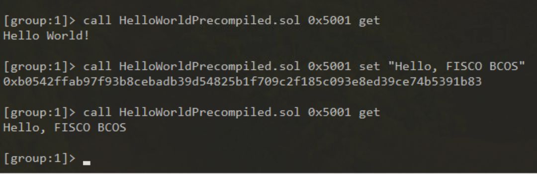 void ExecutiveContextFactory::registerUserPrecompiled(ExecutiveContext::Ptr context){// 用户预编译合约地址范围 [0x5001,0xffff]context->setAddress2Precompiled(Address(0x5001), std::make_shared<precompiled::HelloWorldPrecompiled>());}