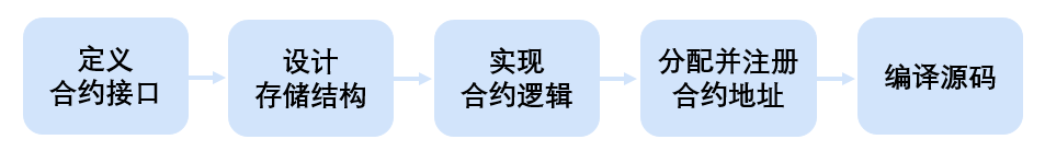 下图所示5个步骤是开发预编译合约的必经之路,我将按步骤实现HelloWorld预编译合约,然后分别使用控制台、Solidity合约两种方式来调用HelloWorld预编译合约。
