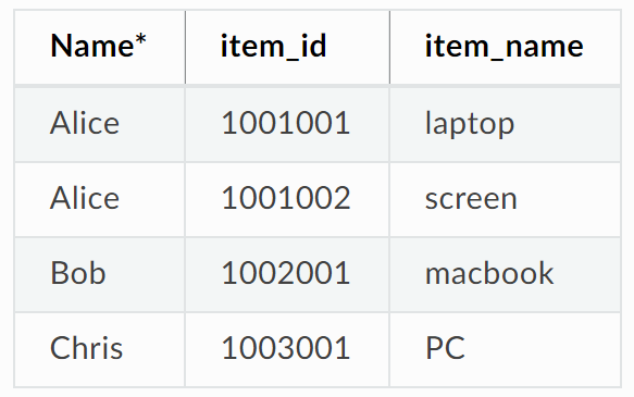Table中以Name为主key,存有3个Entries对象。第1个Entries中存有Alice的2条记录,第2个Entries中存有Bob的1条记录,第3个Entries中存有Chris的一条记录。