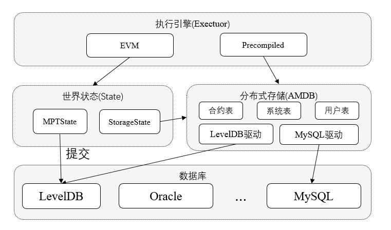 分布式存储(Advanced Mass Database,AMDB):重新抽象了区块链的底层存储模型,实现了类SQL的抽象存储接口,支持多种后端数据库,包括KV数据库和关系型数据库。