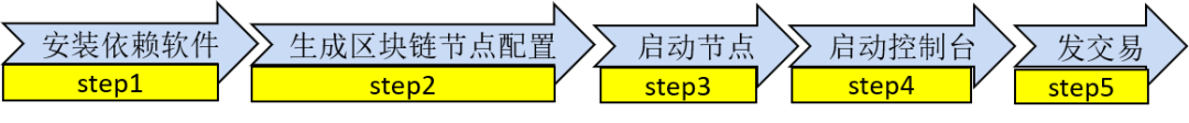 如下图所示,使用FISCO BCOS 2.0快速建链脚本搭建仲裁链(以及所有其他区块链系统)主要包括五个步骤: