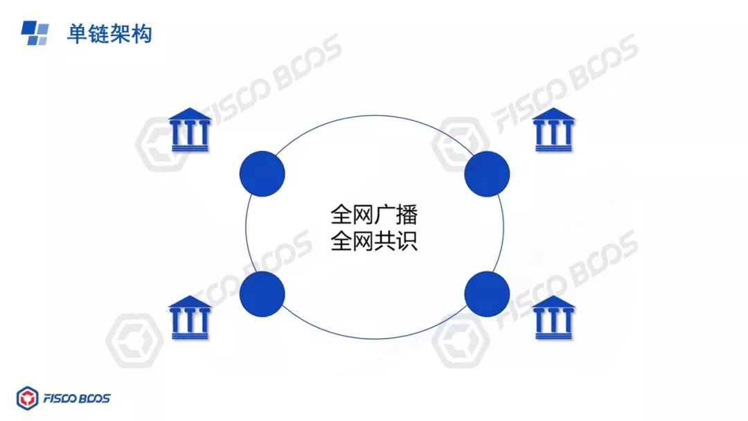 单链架构是最“古典”的区块链架构,全部节点在同一个网络,全网广播,全网共识。这个架构最大的问题是无法扩展,无法支持海量的交易请求。无论单节点的性能如何提升,系统都存在“木桶效应”,计算能力、存储能力、网络能力都不具备良好的扩展性。