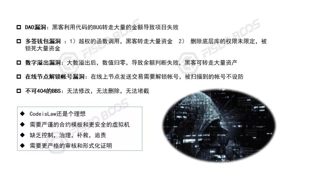 目前,行业里对智能合约的安全也是各出奇招,包括安全公司和白帽子审查、形式化证明、众测等,对安全问题会有一定地改善。如果再出问题,要么是黑客太厉害,或者只能抓程序员祭天了:)