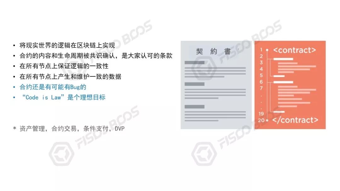 所以,在区块链上执行智能合约,基于沙盒机制控制,凭借区块链的共识算法,达到全网一致、难以篡改、不可否认等特性,运行结果输出就是全网认可的一份合同,江湖人称“Code is Law”。