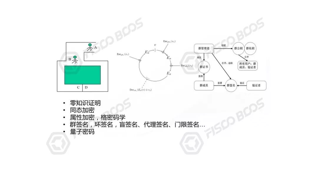 加密学领域里还有同态加密、零知识证明、环签名群签名、格密码等新的方向,目前都处于从理论发展到工程的阶段,都在功能、安全强度、效率方面快速优化中,已经可以看到落地使用的可能性了。同时我们也意识到,密码学通常需要经过长期的发展、验证,稳定后才能获得广泛认可,要么实践中经历了大量考验,要么经过权威机构的审核和认证,才能在生产领域大放异彩。密码学里的理论到工程,常常有很长的时间周期。