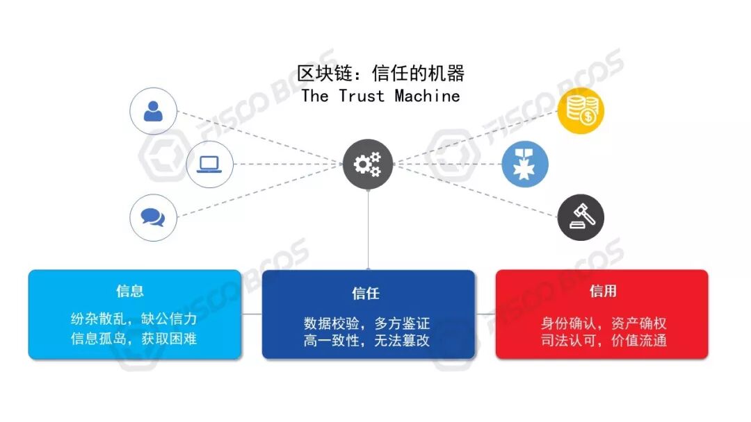 区块链体系基于算法而不是人治,有望通过其独特的分布式架构、加密算法、数据结构、共识机制等,把信息固化成大家的信任锚点;有望通过技术手段把各种现实世界的资源转换成可兑付的数字资产,并展开一系列多方商业协作的活动,这就是所谓的 “信息到信任到信用”,甚至于因为区块链这个黑科技的、行之有效且难以理解的玄妙,这个“信”字仿佛升华成了“信仰”。